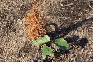 Die Ergebnisse von PYROPHOB bestätigen die Annahme, dass intensive forstliche Eingriffe nach Bränden für die Regeneration von Ökosystemen ungünstig sind. Eine abgeräumter Fläche und vertrockneter Kiefernsämling zeigen, dass das menschliche Eingreifen oft nicht mit Erfolg gekrönt wird.